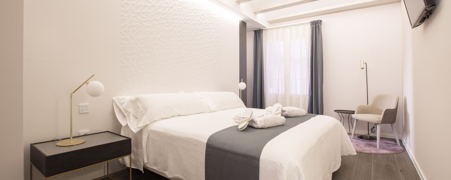 La habitación, de 16 metros cuadrados y con cama de 2 x 2 m, cuenta con una ventana con vistas al Portal de Molina, sofá de lectura, baño completo, secador, albornoces, zapatillas, climatización y wifi gratuito. Distintos espacios modernos equipados con todos los detalles pensados para disfrutar de una magnífica experiencia.